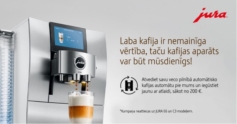 Mūsu pilnībā automātiskajos kafijas automātos mīt mazs barista - ar brillēm, tauriņu un zināšanām par perfektu kafiju. Vai vismaz jūs to &scaro..939.00 € 1299.00 €Bez nodokļa:776.03 €JURA X8 Platinum ir paredzēts darbam intensīvas ikdienas noslodzes apstākļos.Ar 21 dzēriena programmu, divu piena dzērienu pagatavošanu vie..1299.00 € 3386.79 €Bez nodokļa:1073.55 €Mēs pagatavojam cappucino – ar vienas pogas pieskārienu.Mūsu 7. sērijas jau daudzus gadus uzticami nodrošina kafiju ar pien..689.00 € 849.00 €Bez nodokļa:569.42 €Professional Aroma kafijas dzirnaviņasPar 12,2 %* vairāk aromāta un nemainīgi augsta maluma kvalitāte visā darbības laikā ir raksturīgākās Profess..899.00 €Bez nodokļa:742.98 €Patiess skaistums slēpjas iekšāMūsu darbiniekiem bija viens mērķis: padarīt pilnībā automātiskos kafijas automātus vēl modernākus. Visos as..1049.00 € 1249.00 €Bez nodokļa:866.94 €Darbs notiek raiti - tikai pietrūkst kafijas? Mūsu NICR 1040 novērsīs šo nepilnību. Pateicoties vienkāršai lietošanai un tīrī&sca..1949.00 € 2099.00 €Bez nodokļa:1610.74 €