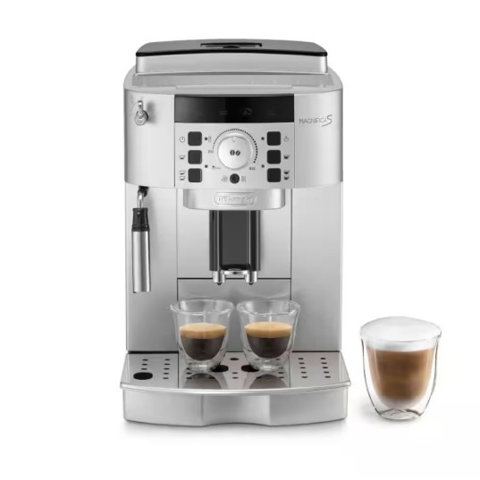 DELONGHI Magnifica S ECAM22.110.SB — одна из самых популярных автоматических моделей De’Longhi. Она каждый раз измельчает свежие кофейные зёрна и готовит эспрессо или чёрный кофе одним нажатием кнопки. Паровая насадка позволяет взбивать молочную пену для напитков с молоком. Простое управление и уход делают приготовление кофе быстрым и удобным. Демонстрационная модель прошла проверку в сервисном центре ATAR — без дефектов, с гарантией и полностью готова к использованию. Обеспечивает качественный эспрессо с возможностью регулировки объёма и степени помола.