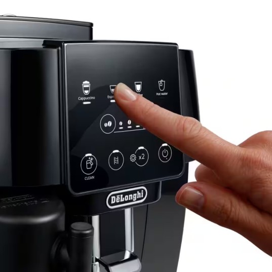 DeLonghi Magnifica Start ECAM220.60.B ļauj baudīt aromātisku espresso no tieši maltām pupiņām. Aprīkota ar LatteCrema Hot tehnoloģiju bagātīgai piena putai un četrām vienas pieskāriena receptēm – Espresso, Long Coffee (Americano), Cappuccino un karsts ūdens tējai vai kakao. Vieglai kopšanai pēc katras piena putošanas ierīce veic automātisku tīrīšanu.