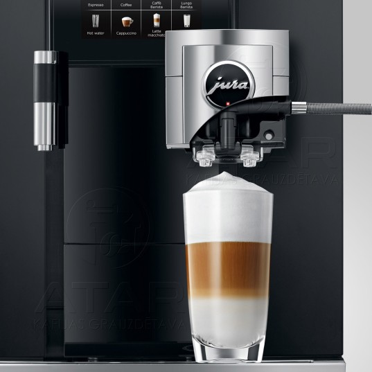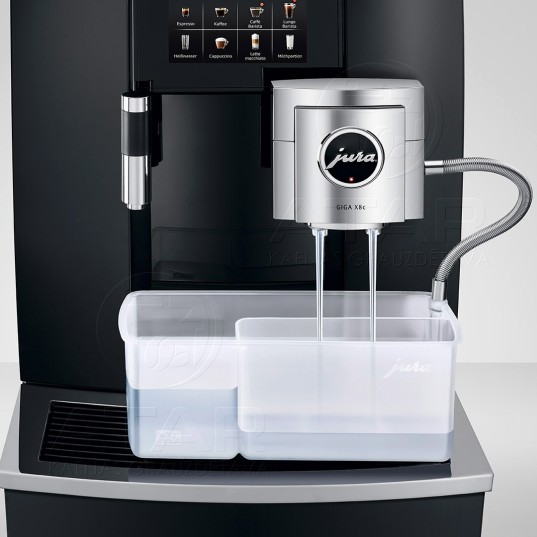 Обслуживание GIGA X8cG2 выполняется так же просто, логично и интуитивно, как и управление. Оригинальные средства для обслуживания от компании JURA и интегрированные программы промывки и очистки обеспечивают уровень гигиеничности, сертифицированный TÜV, одним нажатием кнопки. Настолько же продуманно выполняется и очистка системы приготовления молока. Эта автоматическая функция, активируемая одним касанием дисплея, гарантирует идеальную чистоту при работе с молоком. Функциональный комбинированный дозатор легко разбирается. Размещенные в его передней части дозаторы молока удобно обслуживать и легко заменить при необходимости.