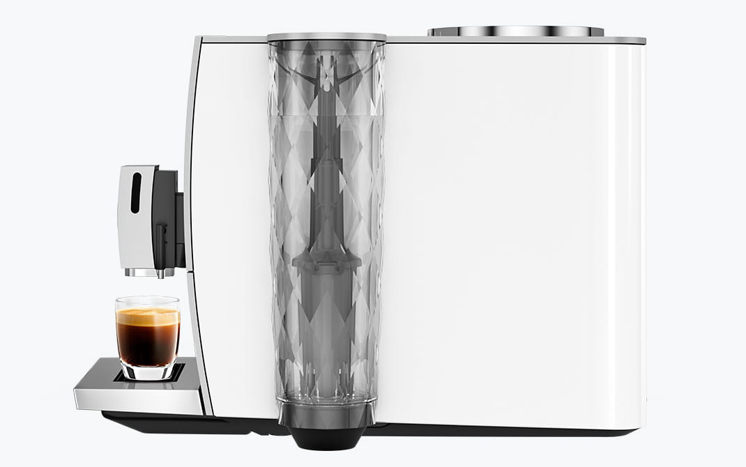 Отличительным элементом ее совершенного дизайна стал круглый бункер для воды. Его конструкция в сочетании с цилиндрической формой напоминает графин из благородного хрусталя.